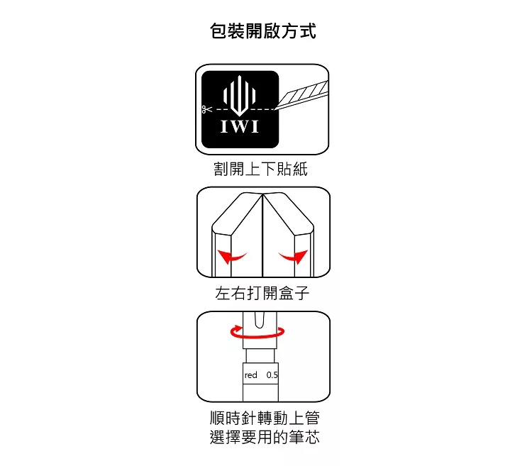 筆身印有black/red/0.5記號,方便使用時選用正確的筆芯。