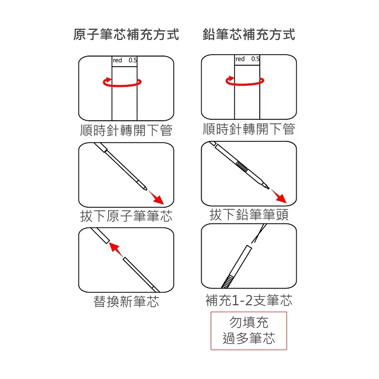 筆芯:金屬D1原子筆芯1.0mm-黑、紅及0.5mm鉛筆芯